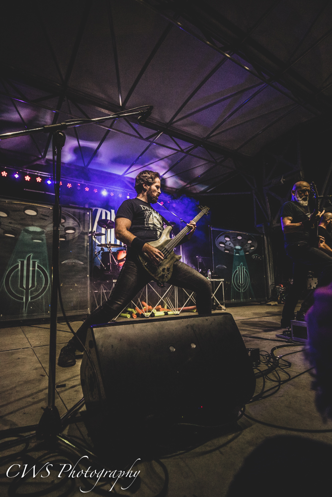 Next up on the docket for day one, Bask, chunky and heavy psychedelic metal. A band that truly seems to be lost in time, but in the best kind of way. These guys sound like they were taken straight out of the ’70s and given modern production tools to piece together some of the grooviest and most fun music I’ve heard in quite some time. Bringing the noise in the main stage after Bask, we have the original RPM Fest band… Lich King! RPM Fest founder, Brian Westbrook, laying down to the drums for this band since 2007, hinted at Lich King’s triumphant return to the festival at the end of last year’s RPM Fest. And let me tell you something they did NOT disappoint! During their third song, there were some technical difficulties with the microphone. Which lead vocalist, Zack Smith, to proceed to climb the PA system next to the stage and take command of the audience from about 25′ up in the air. But really, with the vibe and reputation of the festival, nothing is really shocking at this point and it’s only day 1 of three full days of music. Intense and fast Thrash Metal out of Greenfield, MA in the vein of Slayer and Exodus. Song of the set for me, ‘Combat Mosh’ and their cover of Motley Crue’s ‘Live Wire’. Long live the (Lich) King!!