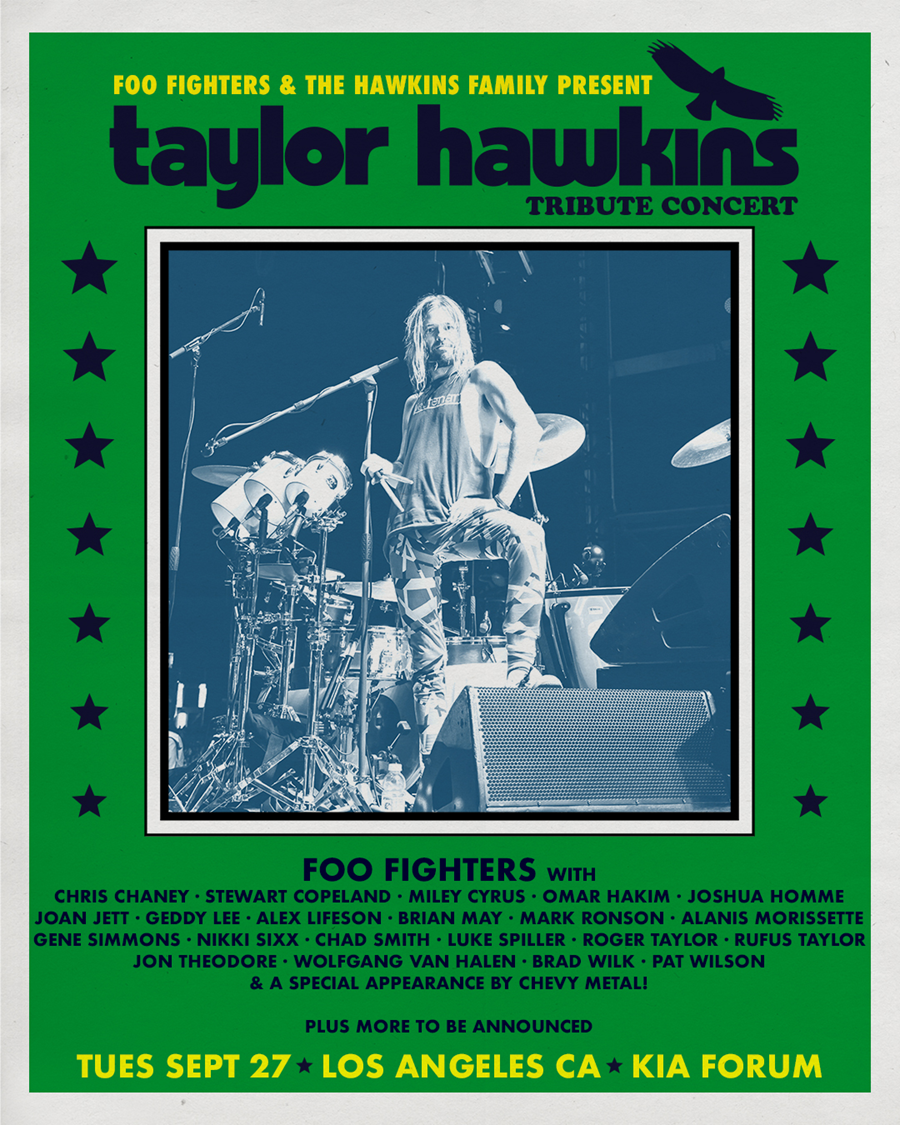 The Taylor Hawkins Tribute Concerts will benefit charities in both the UK and the US and was chosen by the Hawkins family. Beneficiaries and further details will be announced shortly. Performing alongside The Foo Fighters, the first guest artists for Los Angeles announced are Chris Chaney, Stewart Copeland, Miley Cyrus, Omar Hakim, Joshua Homme, Joan Jett, Geddy Lee, Alex Lifeson, Brian May, Mark Ronson, Alanis Morissette, Gene Simmons, Nikki Sixx, Chad Smith, Luke Spiller, Roger Taylor, Rufus Taylor, Jon Theodore, Wolfgang Van Halen, Brad Wilk, Pat Wilson, and a special appearance by Chevy Metal. More artists and guests will be announced. The Los Angeles concert takes place on Tuesday, Sept 27th, 2022 at The Kia Forum. You can sign up for a pre-sale code at the Foo Fighters website.The LA public on sale will begin Friday, 16th of June at 9am local time. The first guests for the London show were announced earlier today and details can be found here.
