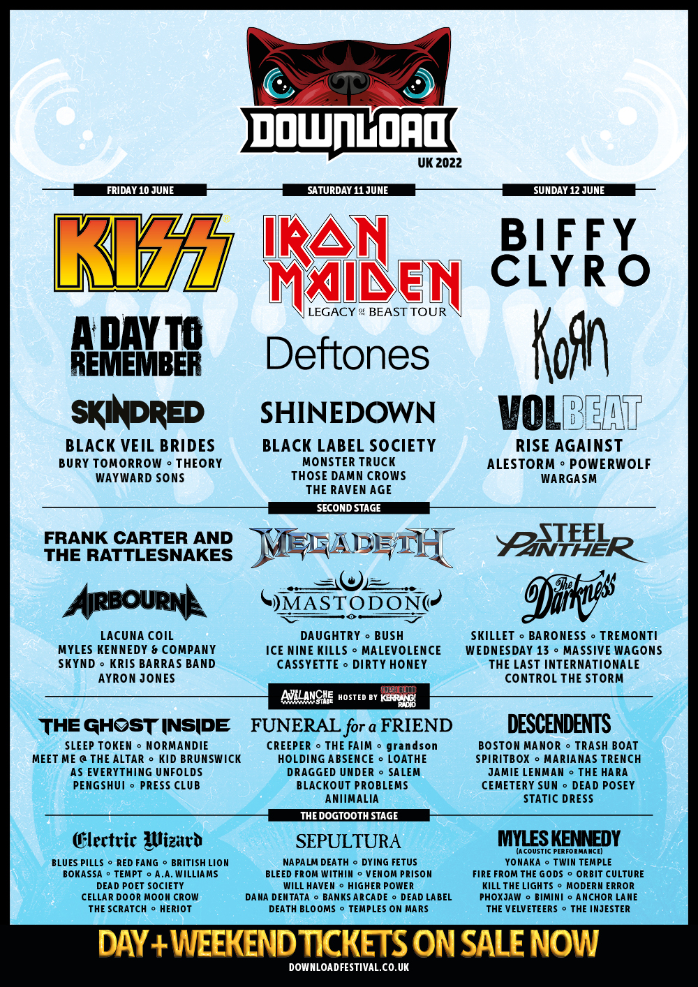 The artists join the already packed line-up including the monumental KISS, who will be playing their last ever UK show on the hallowed turf of Donington Park, Iron Maiden and Biffy Clyro, alongside Skindred, YONAKA, Will Haven, Kid Brunswick, Bimini, Wargasm, Dana Dentata, A Day To Remember, KORN, Funeral For A Friend and many more.
