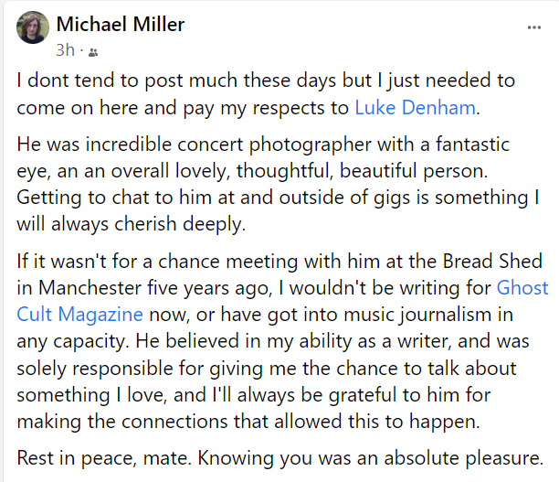 Ghost Cult’s Michael Miller paid further tribute to his friend on Facebook: