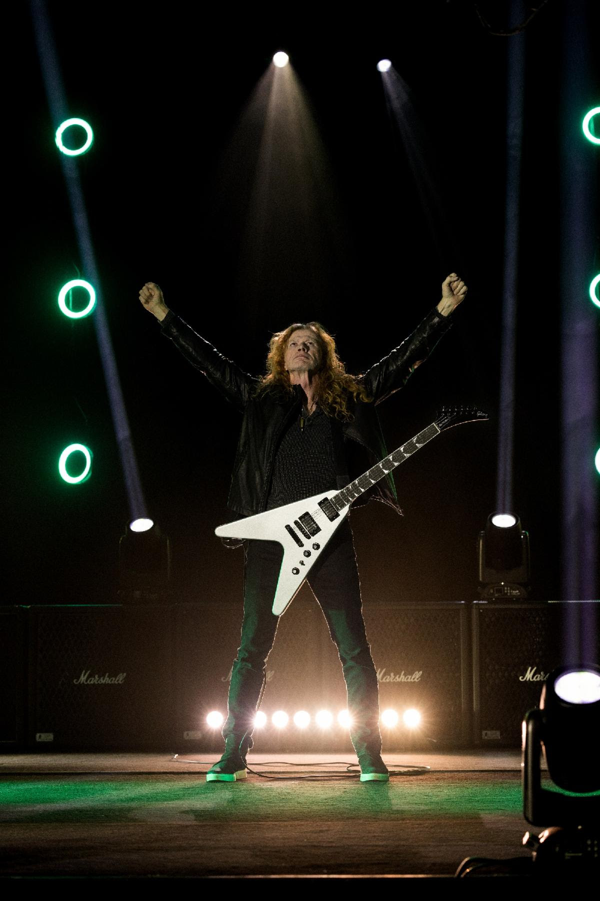 Renowned worldwide and synonymous with metal guitar, Dave Mustaine founded Megadeth in 1984 and less than a year a later debuted with the release of Killing Is My Business… And Business Is Good! in 1985. Megadeth has gone on to sell more than 50 million albums worldwide, earning many accolades along the way, including a GRAMMY® Award for the title track from their most recent album Dystopia, along with 12 additional GRAMMY® nominations, as well as five consecutive platinum/multi-platinum albums. Megadeth has headlined many of the biggest stages in the world and recently played their most successful tour ever, closing every night on the North American amphitheater “Metal Tour of the Year”. Also, a New York Times bestselling author and sought after speaker, host, and commentator, Mustaine has remained a standard bearer for metal and heavy guitar rock, combining a musical and technical standard with the punk and rock n’ roll ethos and attitude. As vital and pace–setting as ever, Megadeth’s last album Dystopia matched the highest chart positions ever achieved by the band.