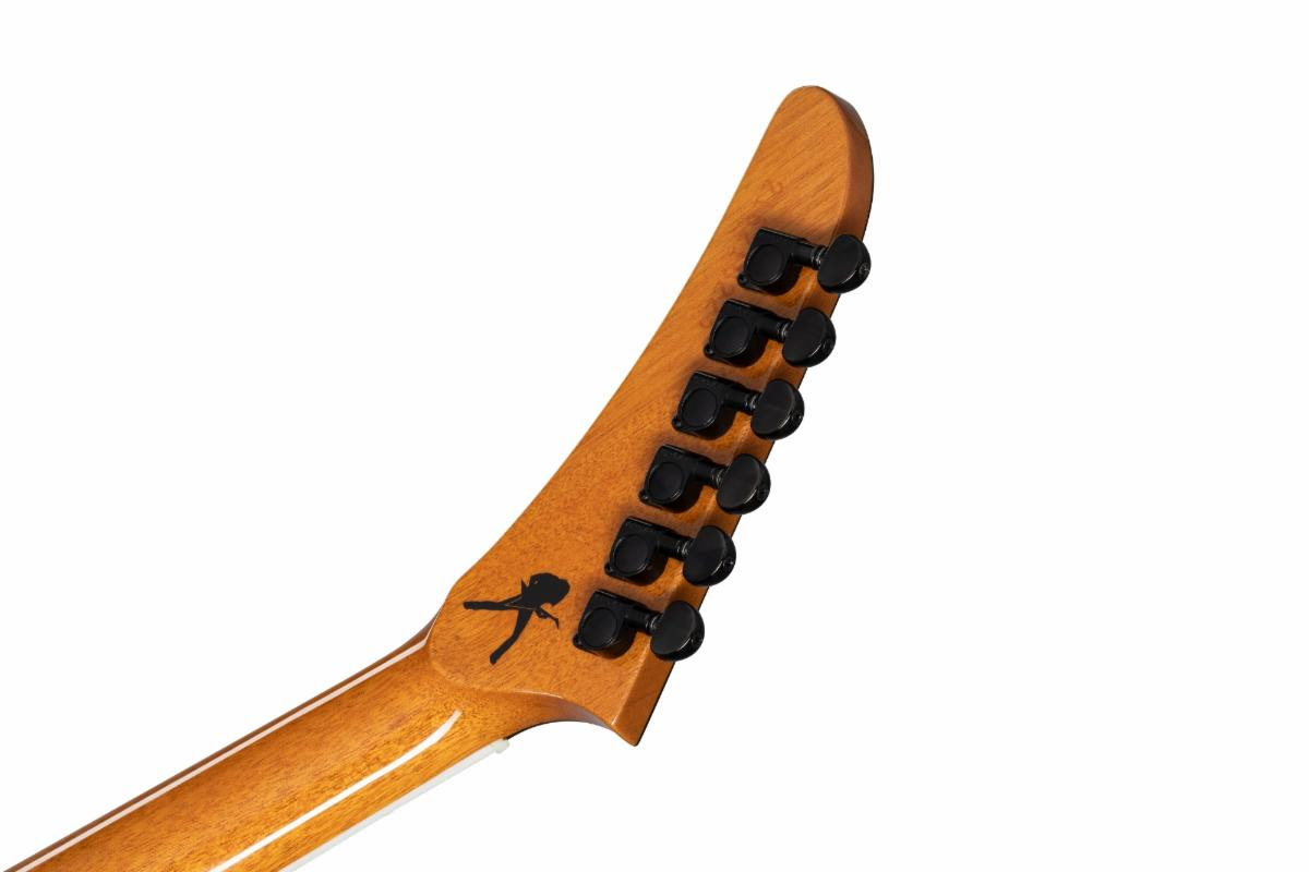 The Dave Mustaine Flying V™ EXP guitars are part of the Dave Mustaine Collection. These guitars deliver the powerful, heavy sounds and exceptional playing performance on the stage and in the studio that Dave demands. The 25.5” scale mahogany neck has an ebony fretboard with a compound fretboard radius, 24 medium jumbo frets, mother of pearl “teeth” inlays, an Explorer-style headstock with Grover® Mini Rotomatic® tuners with Kidney buttons, and a Graph Tech® nut. The mahogany Flying V-style body is equipped with a Tune-O-Matic™ bridge, a Stop Bar tailpiece, and a set of Dave Mustaine Signature Seymour Duncan® Thrash Factor pickups. The Flying V’s are available in both an Antique Natural and a Silver Metallic nitrocellulose lacquer finish which are complemented by black chrome hardware. A hardshell case is also included.