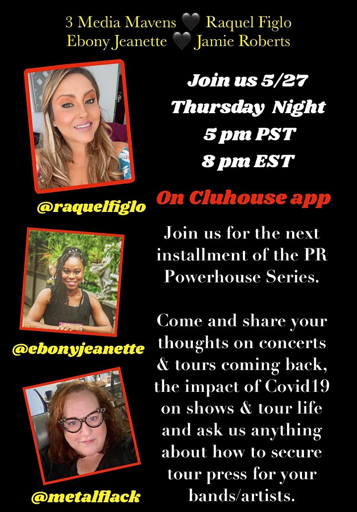 Read the full interview for additional insight at: https://concertcrap.com/experienced-metal-publicists-ebony-jeanette-and-raquel-figlo-team-up-o n-clubhouse-for-monthly-discussions/