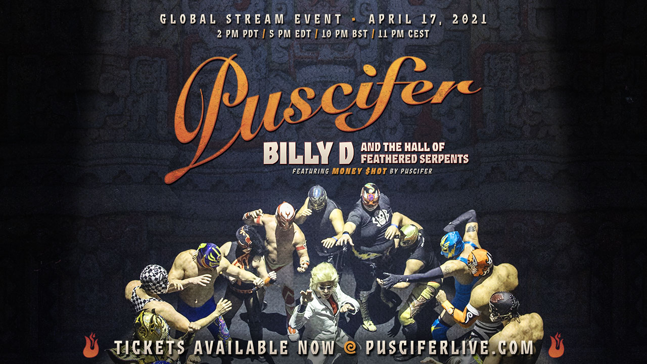 During the very strange time that is the Covid quarantine era, livestreams have become quite popular over the last year. Having seen a few of them, they are well produced and are meant to feel as if one is at the show, albeit with no one else around, and have been quite popular. Having said that, the latest Puscifer livestream entitled Billy D and the Hall of Feathered Serpents featuring Money Shot is on a whole different level! Starting off with Billy D (portrayed by Maynard James Keenan) ending up in an underground luchador bar with “bartesians” serving up experiences in a glass, each drink served up is named after a track from the Money Shot album.