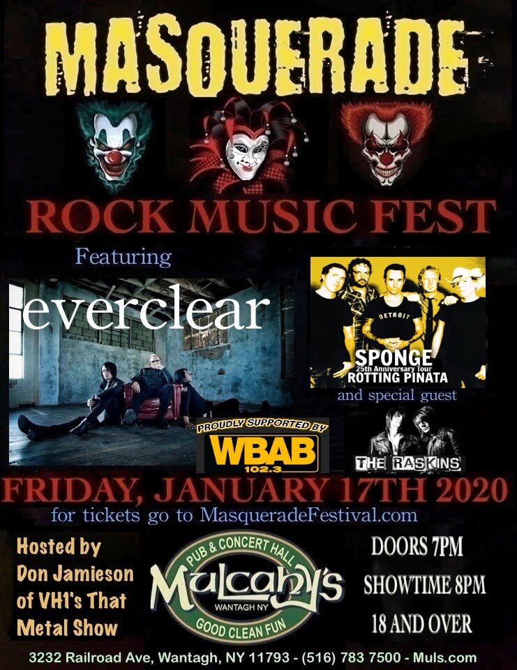 Long Island’s Mulcahy’s in Wantagh, New York will rock on January 17th with The Masquerade Rock Music Fest and will feature alt-Rock legends Everclear, Sponge, along with The Raskins. That Metal Show co-host, Don Jamieson, will be hosting the entire evening. Supported by WBAB/102.3, the performance will be 18 and over, while doors open at 7pm, and the show begins at 8pm. Tickets can be purchased at the link below. The Masquerade Rock Music Fest brings together some of the most talented musical acts in the entertainment industry to one exciting event. Connecting music from the past to the newer generation of fans and connecting the current modern music with the generation of yesteryear is the festival organizer’s goal. Watch the trailer for the fest right now!