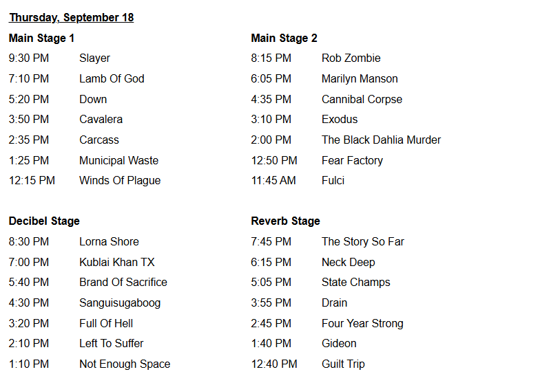 In just a month, Louder Than Life will stage one of the biggest and LOUDEST festivals in North America all year — and the largest in the history of producer Danny Wimmer Presents! With more than 175 bands, 7 stages, and a newly expanded and enhanced festival site, the 11th edition of Louder Than Life – held September 18, 19, 20 & 21 at the Highland Festival Grounds at Kentucky Exposition Center in Louisville, KY – will be like nothing music fans have experienced yet. To help everyone plan ahead, DWP has now released the music performance set times and a new mobile app so attendees can create their dream weekend and make sure not to miss a moment of the action. In addition to the previously announced return of metal legends Slayer, the four-day destination event will also feature Rob Zombie in a global exclusive performance of Astro-Creep: 2000 in honor of the album’s 25th anniversary, plus Marilyn Manson on Thursday; Avenged Sevenfold, Sleep Token and Breaking Benjamin on Friday; Deftones, Bad Omens and A Perfect Circle on Saturday; and Bring Me The Horizon, $uicideboy$, and Evanescence on Sunday.