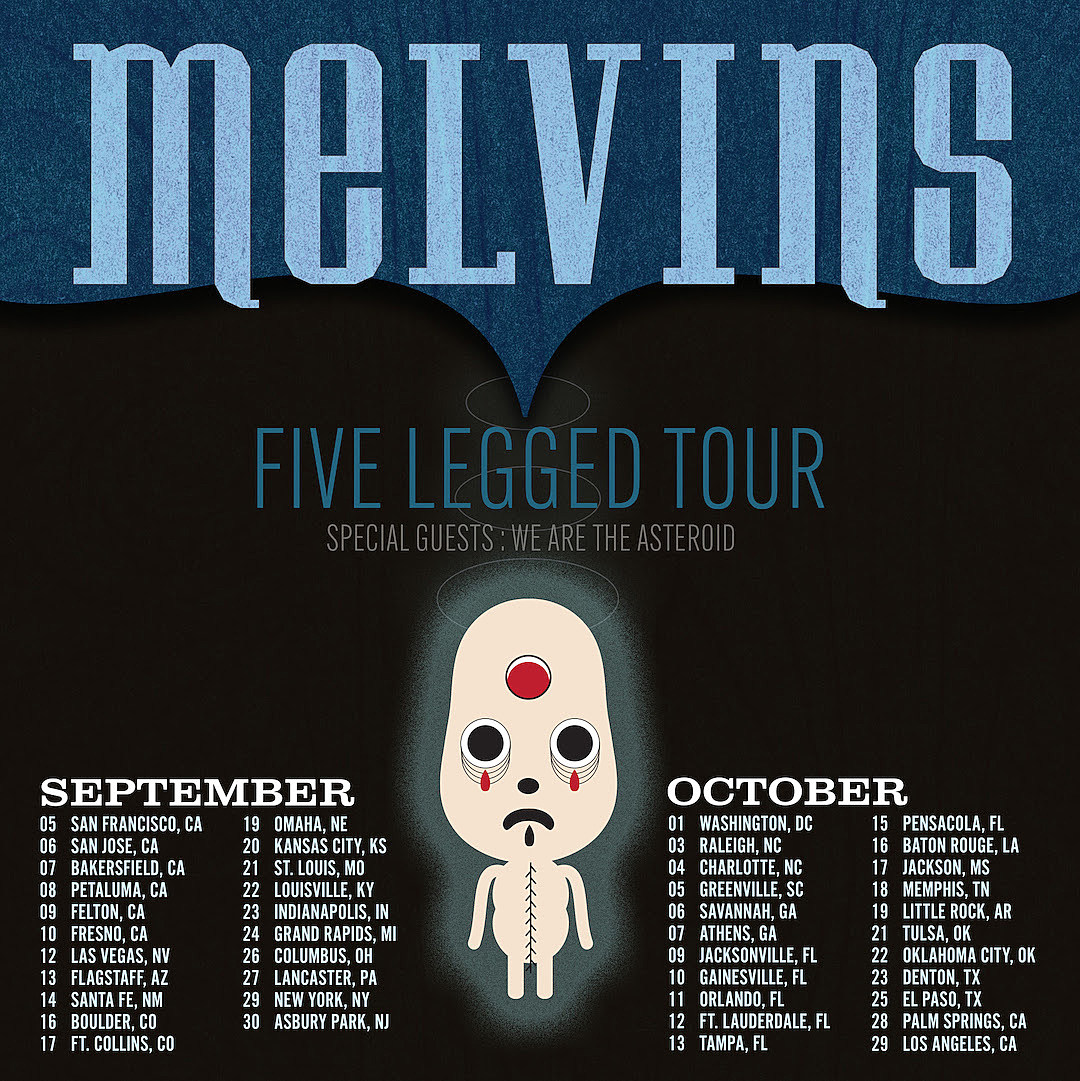 “We’re very excited to have Taipei Houston added to the California portion of our upcoming Five Legged Tour,” says Buzz Osborne of the sibling duo of Myles and Layne Ulrich. “I think they’re a great band and I’m looking forward to watching them play. Everyone please show up early!” We Are The Asteroid appear on all dates.