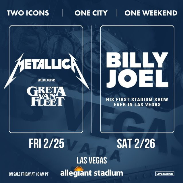 Metallica and Greta Van Fleet will perform night one of a two night event at Allegiant Stadium in February, 2022. Night two will be headlined by Billy Joel. These shows will take place on February 25th and 26th and tickets go on sale to the general public on Friday, October 29th. Metallica shared the news on their socials.