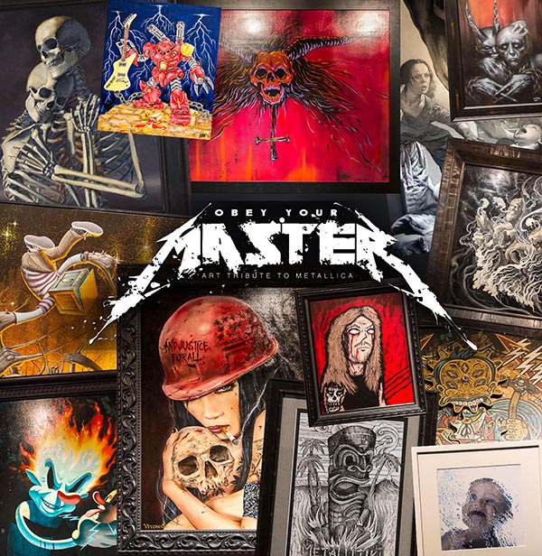 Metallica has long respected the powerful relationship between art and music. The Exhibit A Gallery art show, “Obey Your Master,” explored that connection by inviting artists from the worlds of fine art, fashion, film, music, and skate to interpret Metallica’s songs in their own unique way. The concept of “Obey Your Master” was created in the mind of lifelong Metallica fan, artist, and owner of Exhibit A Gallery, Richard Villa III, along with co-curator Catharina Pedersen. The result was a diverse expression of emotion and inspiration, culminating in an event filled with paintings, posters, sculptures, and mixed media designs.