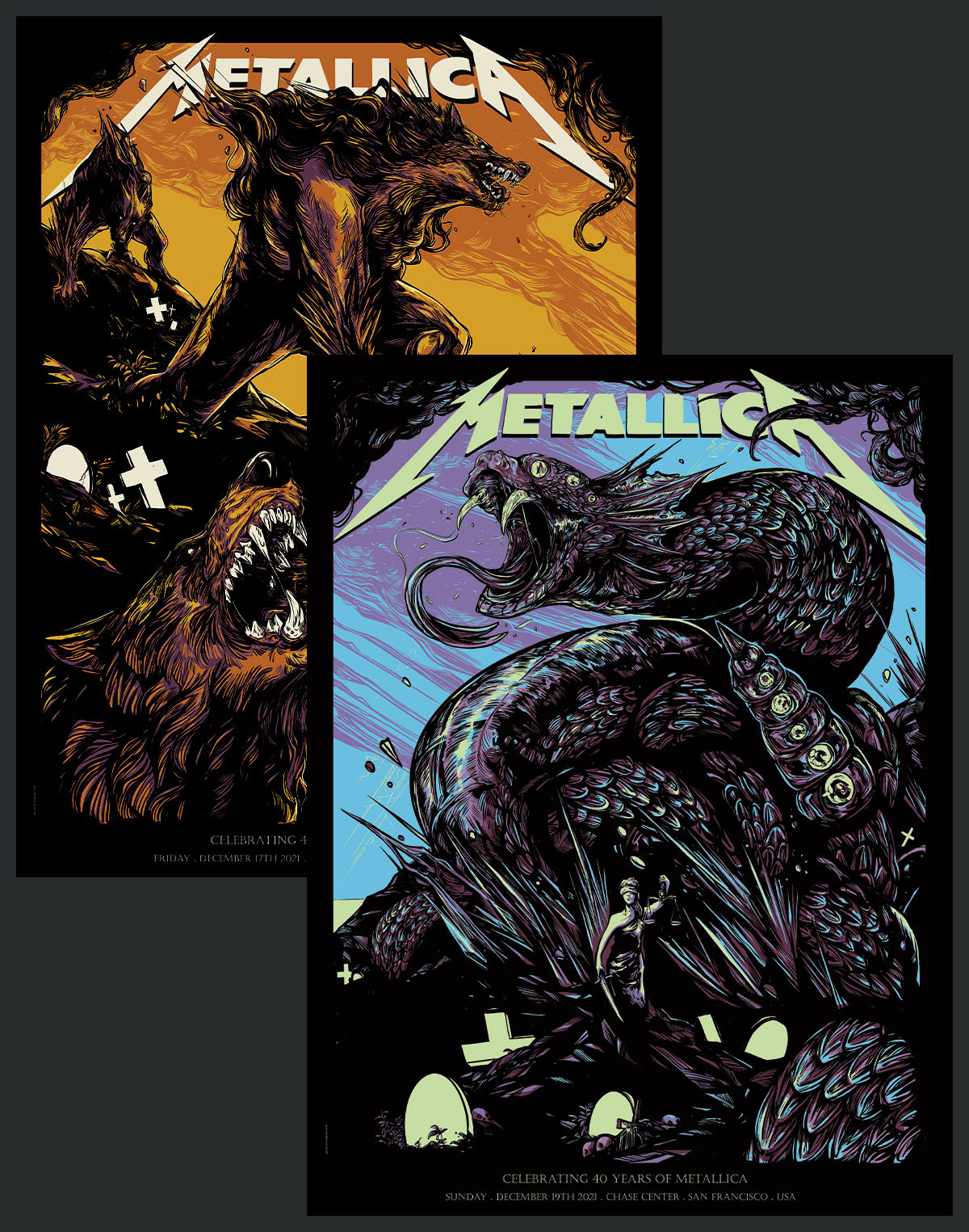 Metallica will release their final batch of commemorative posters from their December 2021 40th anniversary concerts, during their San Francisco Takeover week. Created by WolfSkullJack and they go on sale at the Met Store on Thursday, February 10 at 1 PM PST to grab yours. Check out the message from the band below!
