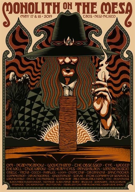 Monolith on the Mesa, conceived as a yearly event, takes place at the Taos Mesa Brewing Mothership, and on the grounds of Hotel Luna Mystica, just outside of Taos, New Mexico. The festival is focused on heavy riff-rock acts from across multiple sub-genres including stoner rock, heavy psych, doom metal, sludge, drone, and retro rock. The dramatic vistas, and multiple stages, along with immersive art installations, make this festival a unique experience that attracts artists, bands, and fans from around the globe.