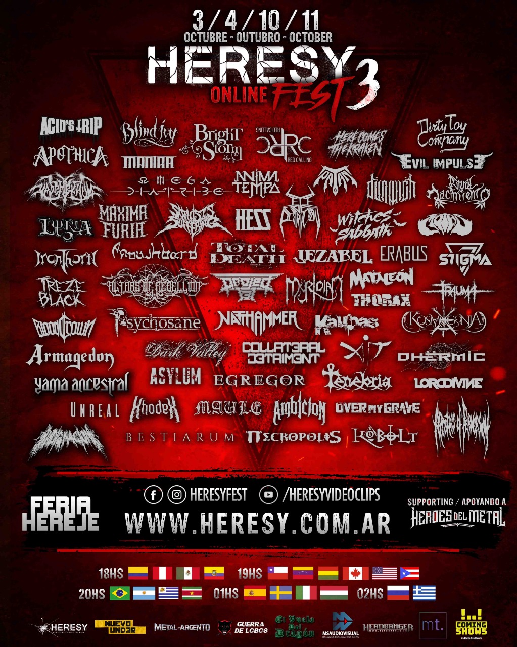 While the Music Industry in 2020 has had to adapt itself to all the consequences that the Covid-19 pandemic has brought, besides few to no concerts, the ones that do happen still have limited capacity for the time being. One of the ways that the Heavy Metal community has tried to keep the reach of bands alive is by the emergence of streami9ng events and Online Music Festivals from all over the world. One of these festivals is the Heresy Fest Online, directly from Argentina, with days 3 and 4, this weekend This festival started in 2018 with the main focus on supporting upcoming bands from all over the world, and through this pandemic, they have been able to do so through online streaming. Gathering about 60 bands from all over the world, the Heresy Fest online will also see a performance from the Puerto Rican Stoner/Progressive Metal band Moths PR this upcoming Sunday, October 11th. The festival is being live-streamed through Youtube and you can set a reminder at this link here: