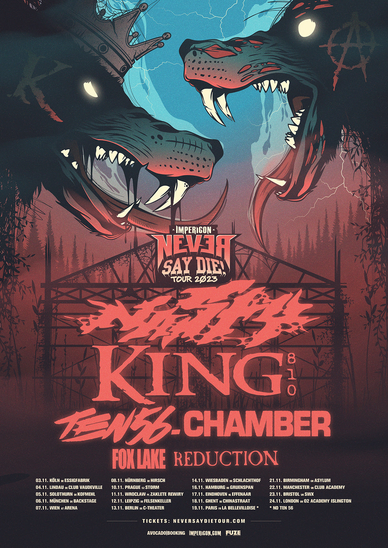 After already playing the 2021 edition Nasty will be headlining all EU mainland dates of the Impericon Never Say Die! Tour 2023 that is also featuring King 810, Ten56, Chamber, Fox Lake and Reduction.