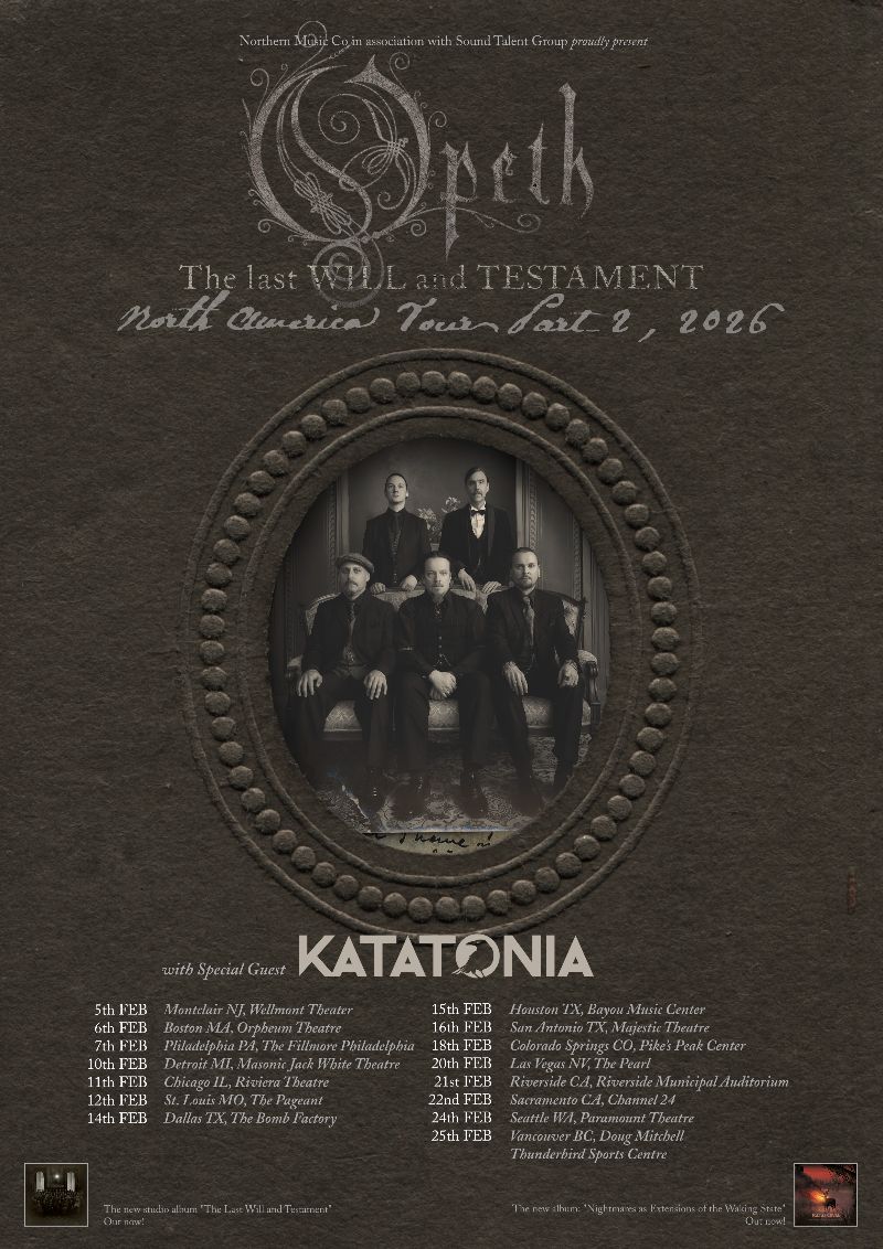 Swedish progressive metal titans, Opeth, are returning to North America next February, for The Last Will And Testament North American Tour Part 2. It comes in support of their 14th studio album, The Last Will And Testament, released on November 22, 2024 through the record labels Moderbolaget / Reigning Phoenix Music. Joining them on the run are Katatonia. Find the live listings and more below.
