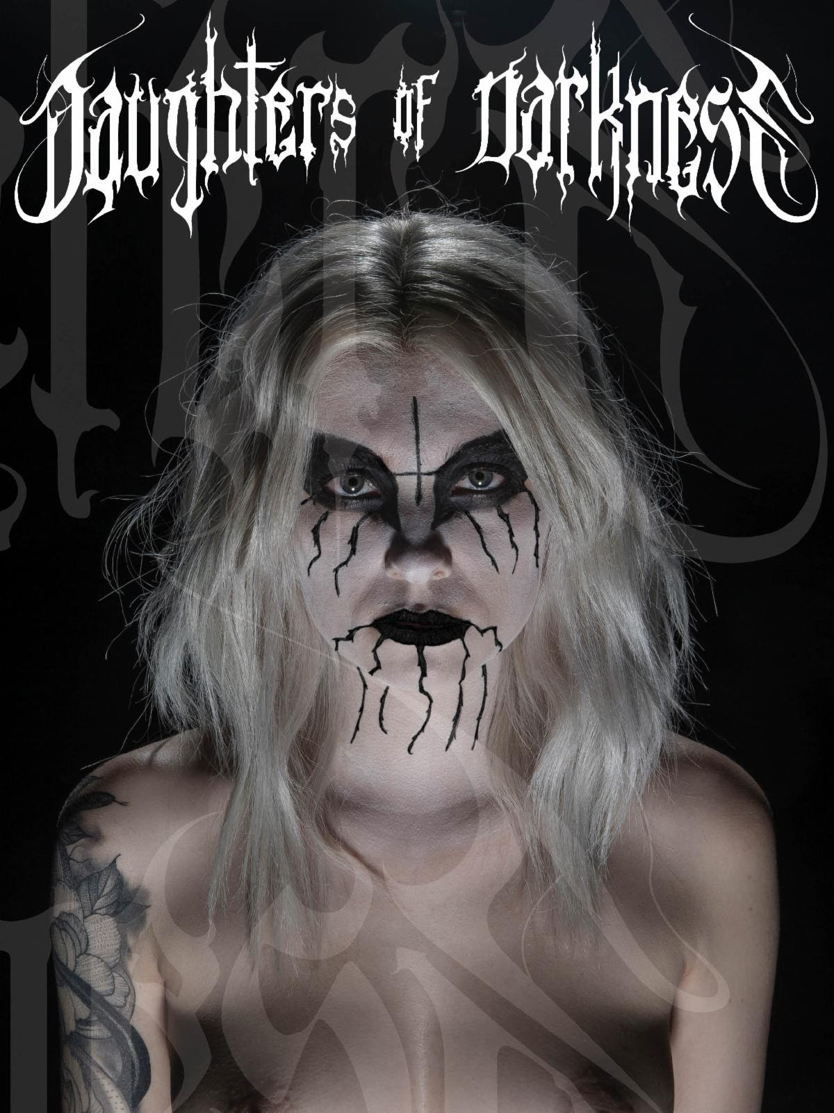 The Standard Edition Bundle includes the book with standard cover, a Daughters of Darkness tote bag, five 4×6 Daughters of Darkness metallic mini prints, two Daughters of Darkness corpse paint guitar picks, three stickers, one Daughters of Darkness phone-pop, and an Introduction by Lamb Of God’s Randy Blythe and foreword by Cradle of Filth’s Dani Filth.