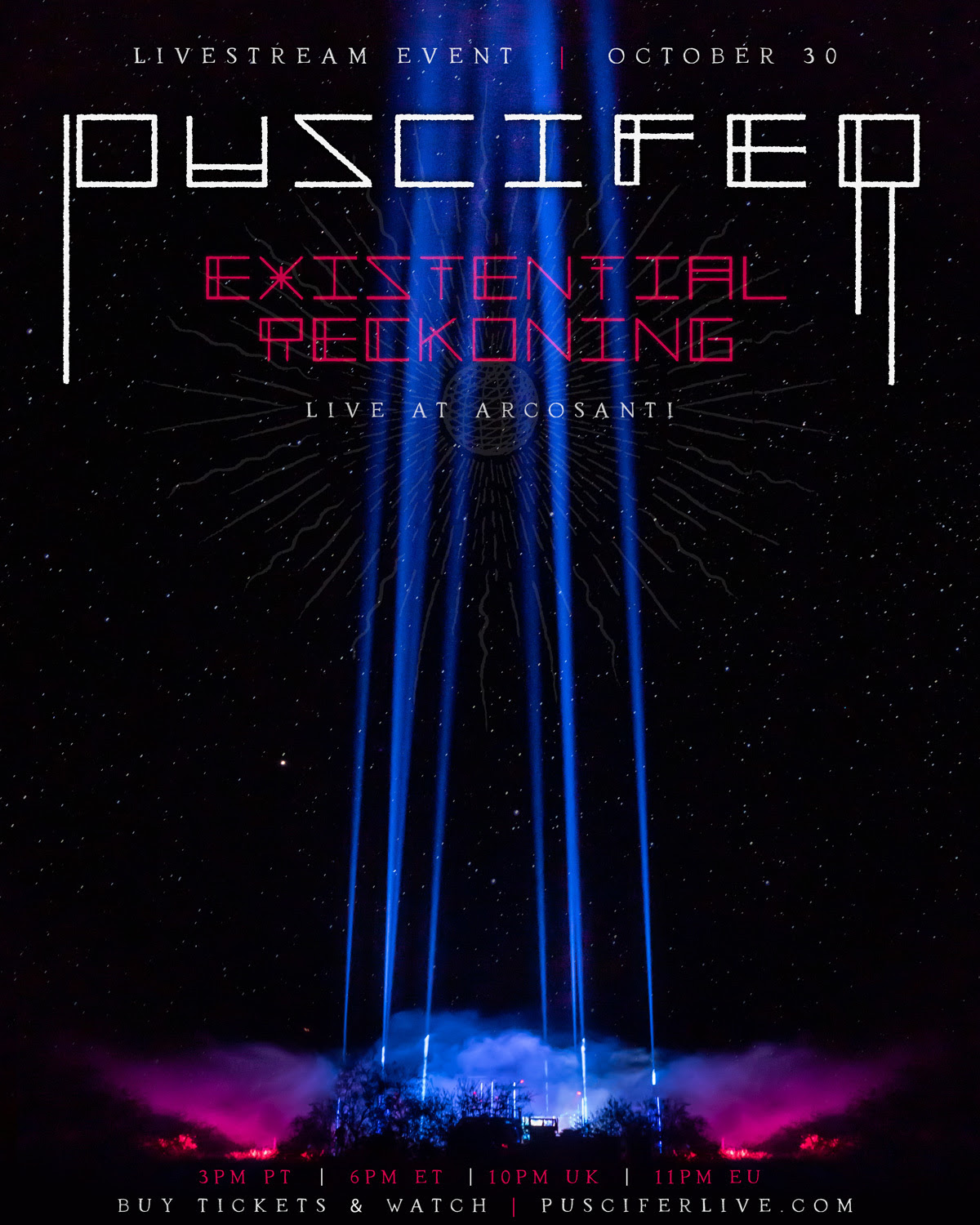 Theatrical musical troupe Puscifer, led by Maynard James Keenan (Tool, a perfect circle) will release their next album, Existential Reckoning (Alchemy Recordings/Puscifer Entertainment/BMG), October 30th, 2020. The album continues the legacy of creating stimulating and confounding musical and twists and turns. Now they have announced a plan to take fans into the Arizona Desert to take fans into the high desert of Arizona with a visually-stunning, livestream concert experience dubbed “Existential Reckoning: Live at Arcosanti.” Livestream tickets, as well as a selection of limited edition merchandise exclusive to attendees, are available now via the link below. The event is being co-produced by Danny Wimmer presents (Sonic Temple, Aftershock Festival, Welcome to Rockville) The livestream debuts on Oct. 30 at 3:00 pm Pacific/6:00 pm Eastern/10:00 pm UK/11:00 pm EU and remains on-demand for 72 hours. Watch the teaser for the event now.