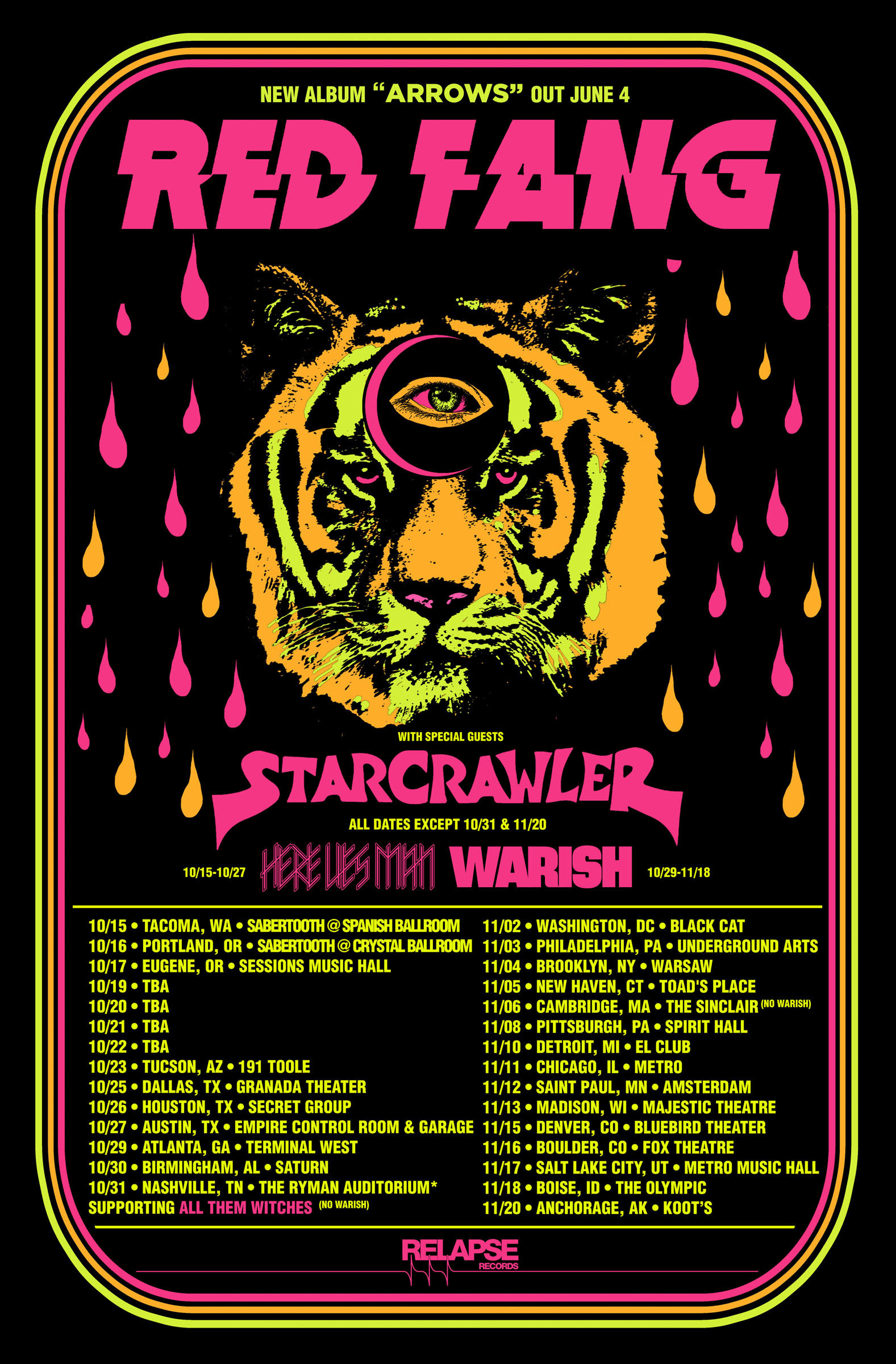 Stoner Rock legends Red Fang have dropped their excellent new album Arrows, (review here) and the band has announced a U.S. tour that sees the Portland-based band trek across the continent, including the group’s first Alaskan performance. Starcrawler, Here Lies Man and Warish will provide direct support on every date, with more dates to be announced soon.