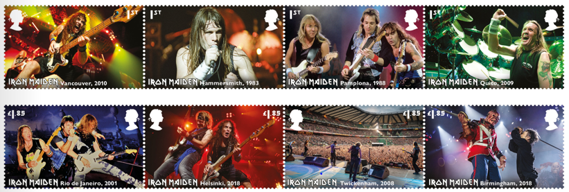 Iron Maiden become only the fifth music group to feature in a dedicated stamp issue – following on from The Beatles in 2007, Pink Floyd in 2016, Queen in 2020, and the Rolling Stones in 2022