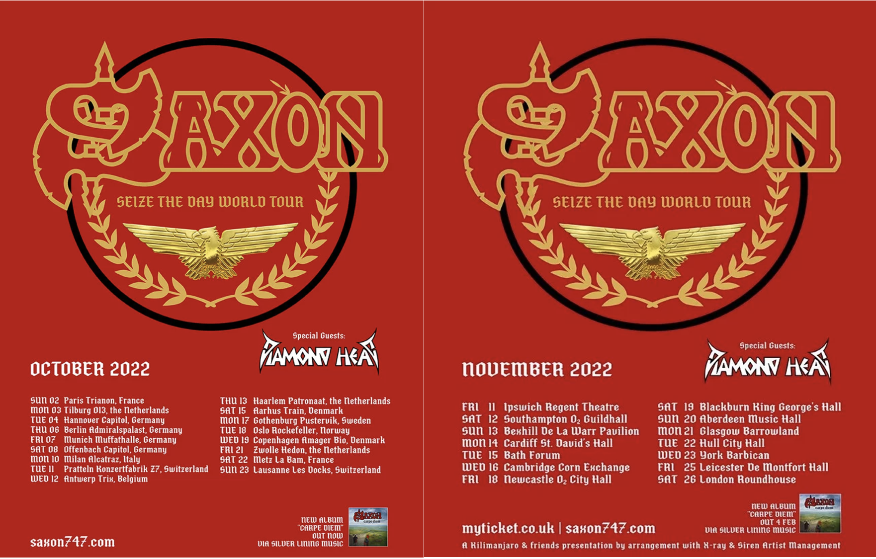 Frontman Biff Byford comments: “Looking forward to the Seize The Day Tour. See you all on the road and enjoy the new video for Black Is The Night!”