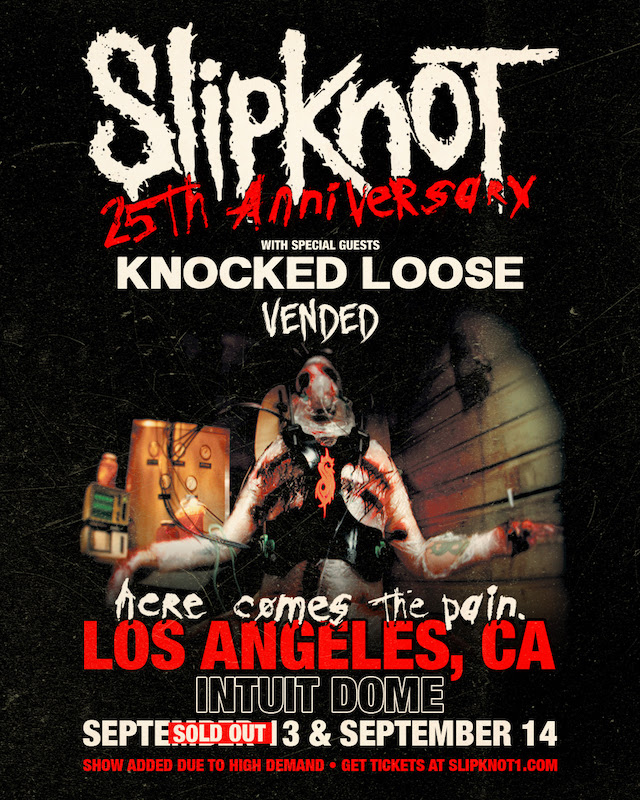 Due to incredible demand, heavy titans, and cultural phenomenon, Slipknot are pleased to announce a second LA show has been added to the North American portion of their Here Comes The Pain Tour – Saturday, September 14 at Intuit Dome. Tickets for the newly added show and the entire tour will be available via a general on sale on Friday, May 3 at 10 AM Local at the link below. The band also finally announced Eloy Casagrande as their official new drummer. Slipknot will also head out on their “Here Comes The Pain” 25th Anniversary Tour this summer, as well as Knotfest Iowa in September and two headline shows in Mexico.