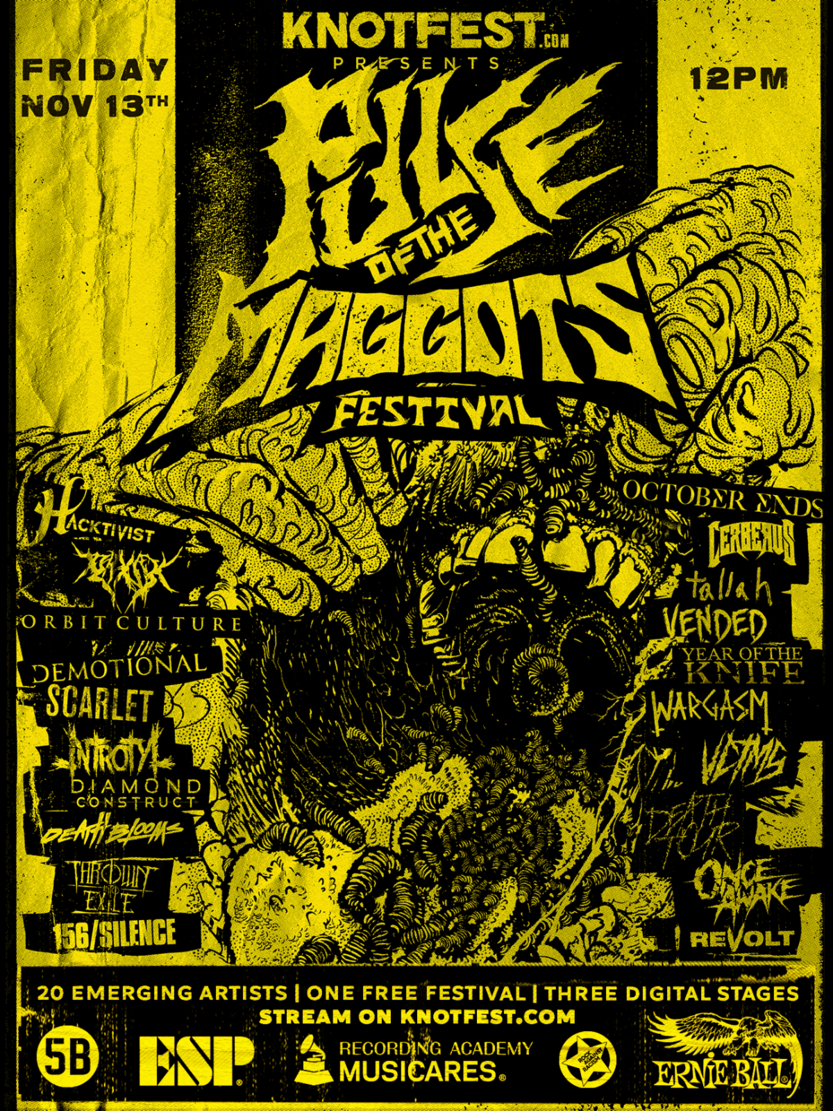 Starting today, Knotfest.com will spotlight each artist including some that will be featured on Knotfest.com’s flagship show Mosh Talks with Beez. Pulse of the Maggots Fest kicks off at 8pm UK time/12pm PST on Friday 13th November. Click here to learn more.