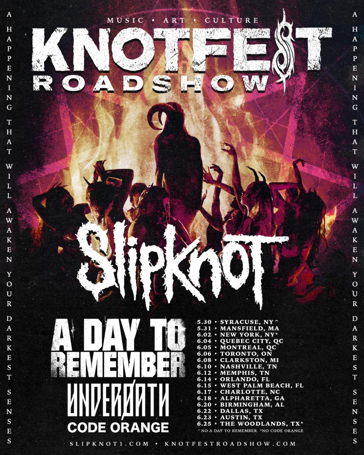 Slipknot launched their wildly successful Knotfest Roadshow last summer to launch their current album We Are Not Your Kind (Roadrunner/Elektra). Now the tour is back in arenas this summer and features Slipknot, A Day To Remember, Underoath, and Code Orange! VIP and general tickets go on sale this week at the links below!
