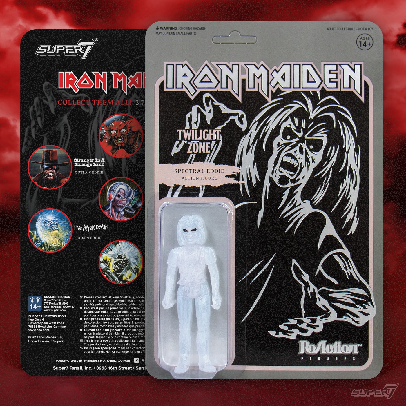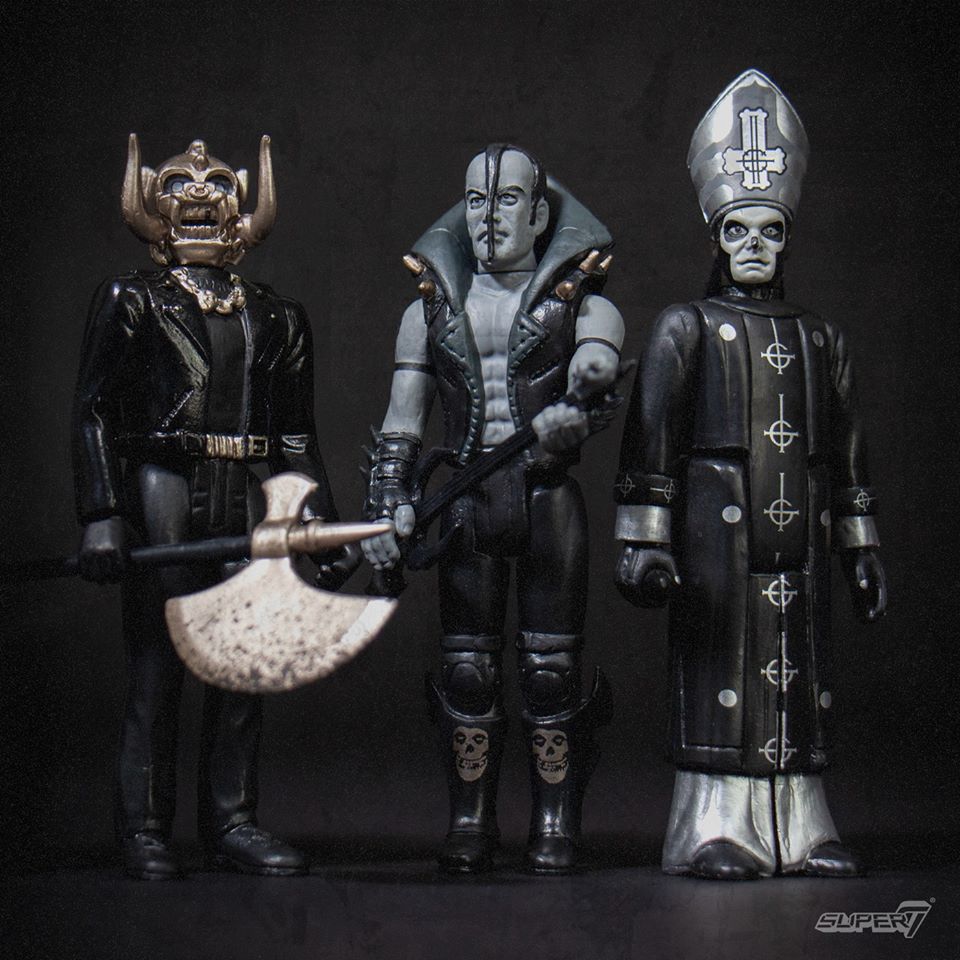 Super7 Toys will release more ReAction figures of Iron Maiden, Ghost, Motörhead, and Misfits next week! Iron Maiden figures will be avaialble on 1/22 and include Limited Edition Wave 2 assortment: Stranger In A Strange Land Eddie (with CLOTH overcoat)! The Number of the Beast Album Cover Devil! Piece of Mind Eddie! Live After Death Eddie! Somewhere In Time Eddie (with CLEAR cyborg skull)! Flight Of Icarus 7-inch Single Eddie (with wings AND flame thrower)! Twilight Zone 7-inch Single Spectral Eddie!. The “None More Black” Ghost, Motörhead, and Misfits versions of existing figures will be avaialble on 1/24 from the Super7 webstore.