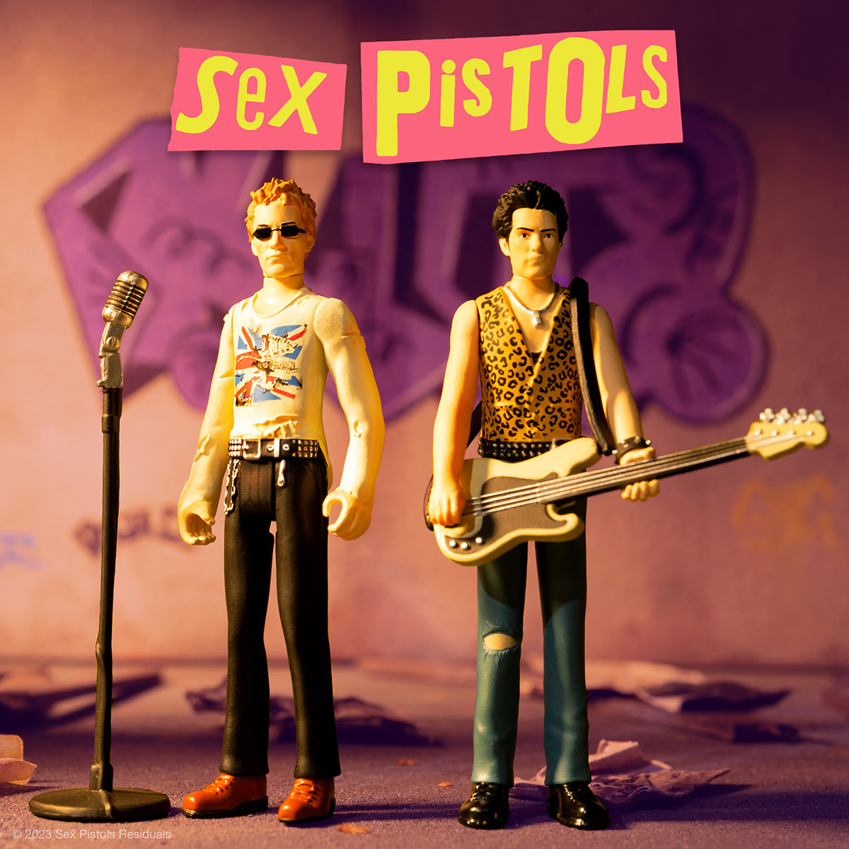 Super7 Toys has released new Sex Pistols ReAction Figures for Johnny Rotten and Sid Vicious You can buy them at the link below! In addition to the ReAction figures, Super7 has released a Slayer Live Undead playset as well as figures based on other music, movies, toy lines, and other pop culture icons. Other reaction figures in the line include Ozzy Osbourne, Cliff Burton of Metallica, Johnny Cash, Misfits, Alice Cooper, several versions of Papa Emeritus and Nameless Ghouls, Iron Maiden, Slayer, Agnostic Front, Anthrax, Lemmy of Motörhead, Beastie Boys, Venom, Circle Jerks, Gorilla Biscuits, King Diamond, Megadeth, Rancid, Judas Priest, Napalm Death, Paul Baloff of Exodus and many more! Order right now since these usually sell out.