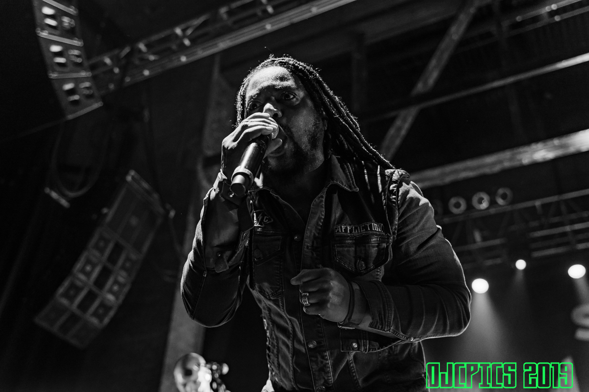 Sevendust finally came on stage to their intro music, and the packed crowd approved. As the band took their seated spots for the night and checked their gear, Lajon Witherspoon welcomed the crowd and promised a good time. Drawing on their new album Time Travelers & Bonfires (7Bros.) The immediately launched into ‘Trust’ and the band sound great. Playing acoustically, and only augmented by their touring piano player Kurt Wubbenhorst, they played a flawless evening of music. Even if they were just doing straight up acoustic versions of their heavier songs note for note (which they are not) it is a challenge to play electric acoustic live in a large venue. The rub is even the best acoustic guitars sound too thin at times. It’s also unforgiving for mistakes, but then again, I heard none tonight. The second song of the night was my personal favorite since their first album, ‘Prayer’. I think this song works even better given this treatment than the original. ‘Crucified’ is one of their older songs they have given a slightly new arrangement to on the new album. Known to be a hard hitter behind the kit, Morgan Rose thrashed around and smashed his drums like any other time I have seen the band. Maybe just a touch softer. The entire band also sounded great singing together, not just Lajon and Clint Lowery either. ‘Under It All’ was the first of the new songs played and it fit right in with the oldies and deep cuts too. The gems they pulled out tonight were especially sweet if you were a long-time fan.