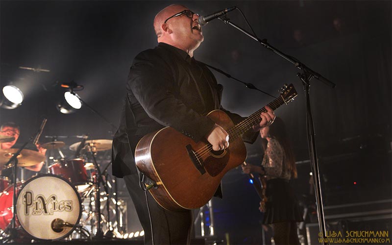 The Pixies traipsed their former collegiate stomping grounds with supporting act Cymbals Eat Guitars for a long weekend in light of their newly released 6th album Head Carrier (Pixiesmusic/PIAS). Fans old and new congregated on Friday and Saturday at the House of Blues Boston, then Sunday at the Paradise Rock Club to revel in the vocal musings of Frank Black aka Black Francis, legendary guitarist Joey Santiago, and drummer David Lovering. Bassist Paz Lenchantin (A Perfect Circle) joined the band in 2014, replacing Kim Deal. That evening, Paz embraced the role with her glowing stage presence, and beautiful floral adornment on the headstock of her bass.