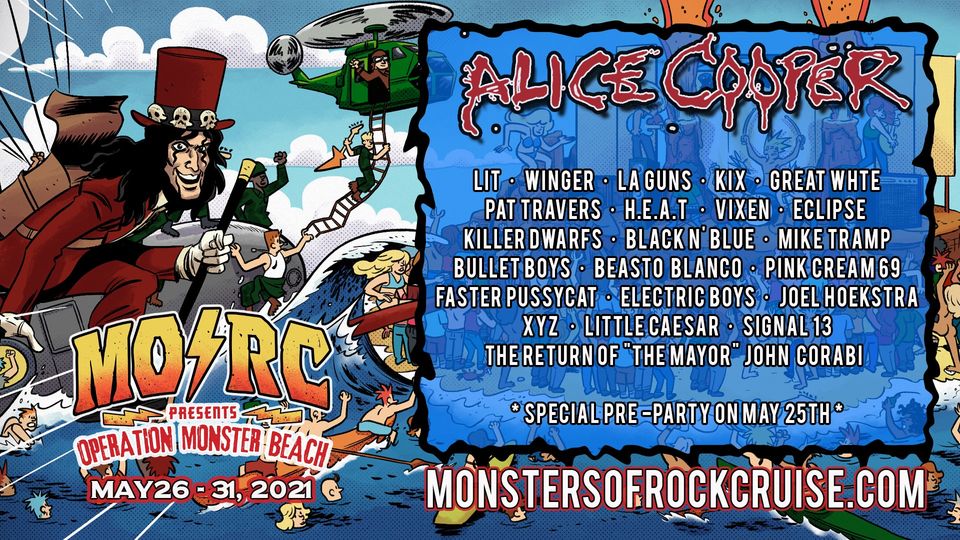 From the creators of the Monsters of Rock Cruise and the Megacruise comes Monsters of Rock – Operation Monster Beach, setting sail for Punta Cana, Dominican Republic in 2021! Expected to be one of the first major Hard Rock/Heavy Metal Travel Experiences for next year. Operation Monster Beach on May 26 – 31, 2021. Going on sale tomorrow, 12/1/2020 to the general public tomorrow, Tuesday, December 1st at 2 pm Eastern time! . The cruise features stops at two resorts and will be headlined by Alice Cooper, Beasto Blanco, Winger, “The Mayor” of MOR, John Corabi, Signal 13, H.E.A.T., LA Guns, Kix, Vixen, Eclipse, Mike Tramp, Killer Dwarfs, Black N Blue, Bullet Boys, Pink Cream 69, Faster Pussycat, Electric Boys, Joel Hoeksta, XYZ, Little Caeser with many more acts to be announced. Book your tickets tomorrow and get your passport to rock right now!