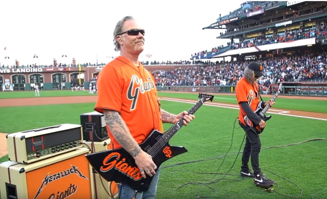 For the seventh year in a row, Metallica has had a relationship with the San Francisco Giants for an annual Metallica night. Last night was Metallica Night 2019 as the band participated in the festivities before the Giants took on the New York Yankees. James Hetfield and Kirk Hammett performed the US National Anthem, while drummer Lars Ulrich tossed out the ceremonial first pitch. Then the band raffled off a guitar signed by the entire band. Watch the performance below.Continue reading