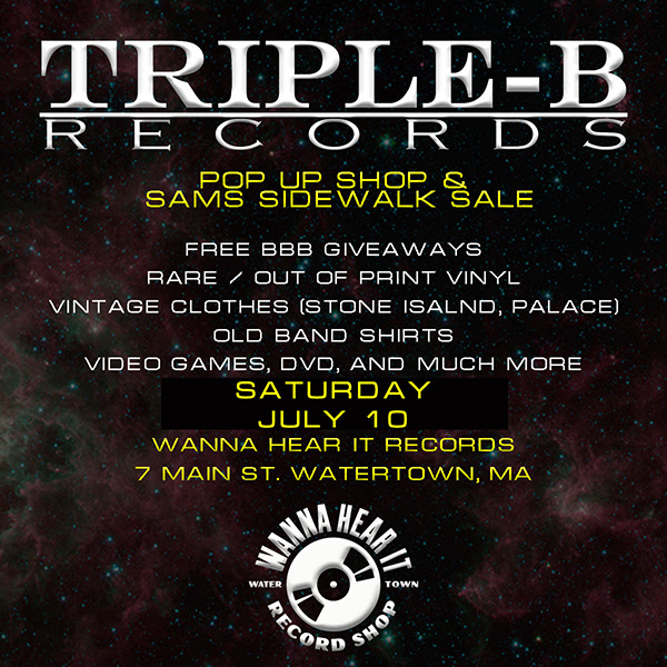 Triple B (BBB) Records has a cool stable of artists we dig, such as Fuming Mouth, Fury, Nudie Mag, C4 and more! They will hold a sale for merch, rare vinyl and more tomorrow, Saturday, 7/10/2021 at the excellent Wanna Hear It Records of Watertown, MA. Check out the flyer and show some support!