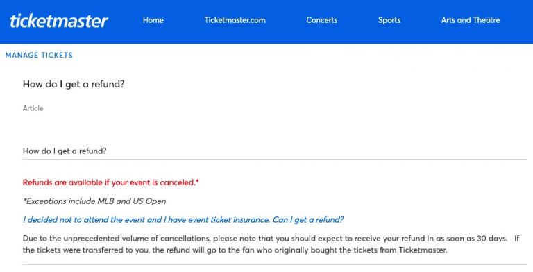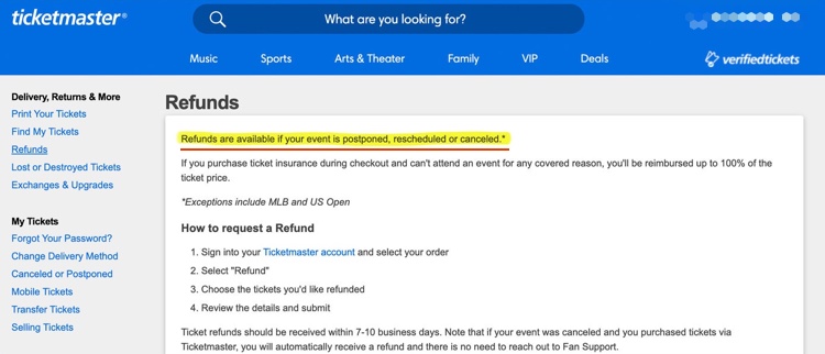 Previously, Ticketmaster’s refund policy stated: “Refunds are available if your event is postponed, rescheduled, or canceled.”