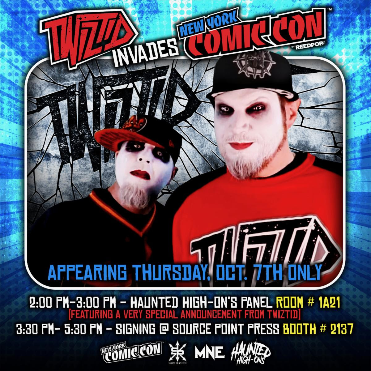 Horror driven Rap-Rockers Twiztid will take over New York Comic Con today as the group does a panel with their Twiztid Haunted High-Ons: The Curse Of The Green Book co-creator Dirk Manning (Mr. Rhee), a signing, the announcement of impending Funko Pops of the duo and new tour dates. The band also dropped a world premiere for their new music video “Corkscrew” which you can watch right now!