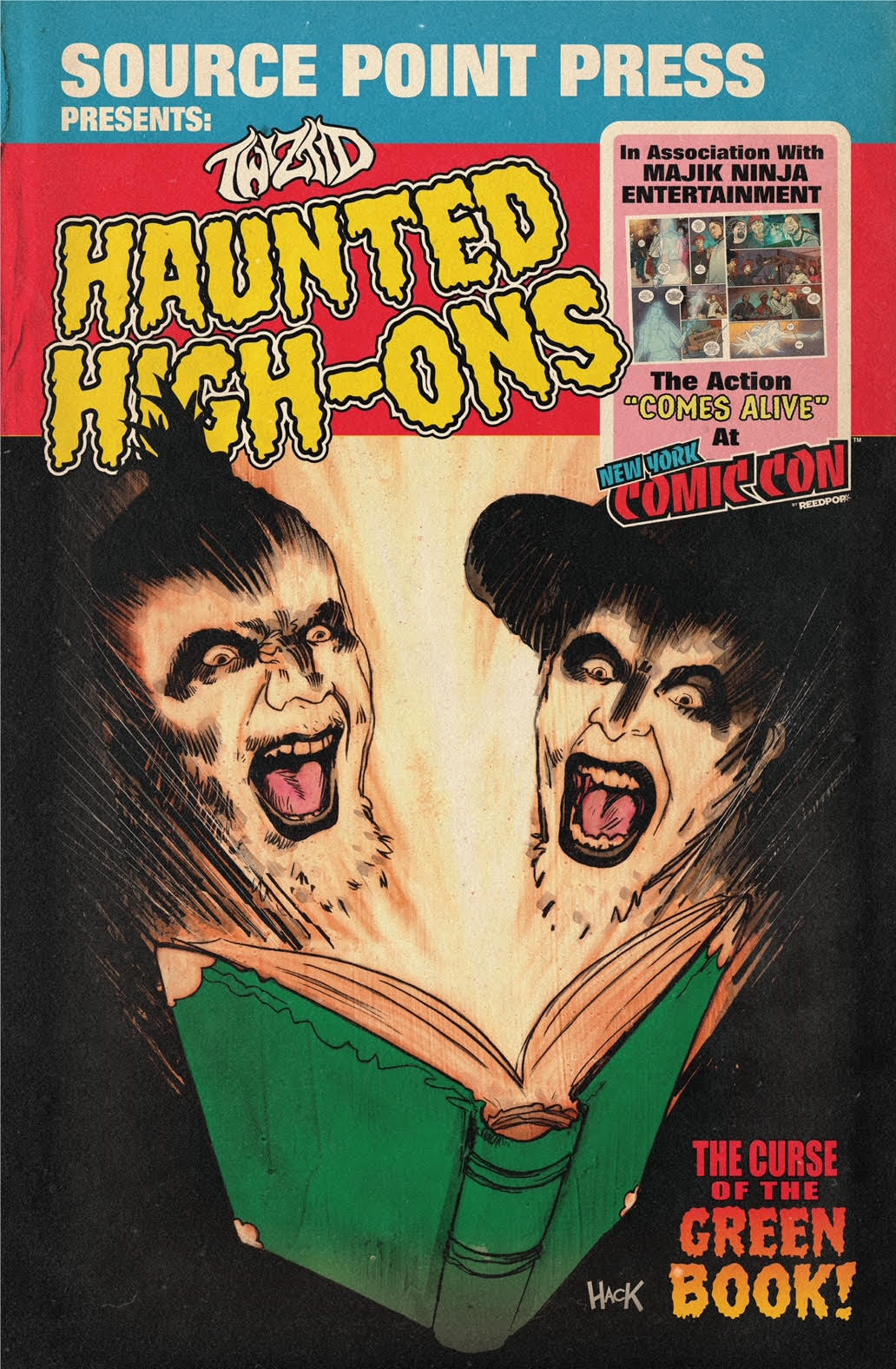 Secondly, it was announced that the first two (of four) issues of the duo’s multi-award nominated graphic novel series, Twiztid HAUNTED HIGH-ONS: “The Curse of the Green Book”(published by Source Point Press) are now available to pre-order at comic book stores everywhere. The series features Twiztid as a pair of fake ghost hunters who unwittingly find themselves in real-life paranormal situations. Pre-ordering the individual issues is the only way for fans to guarantee their copy, especially of the main cover art as well as the variant cover of each issue.