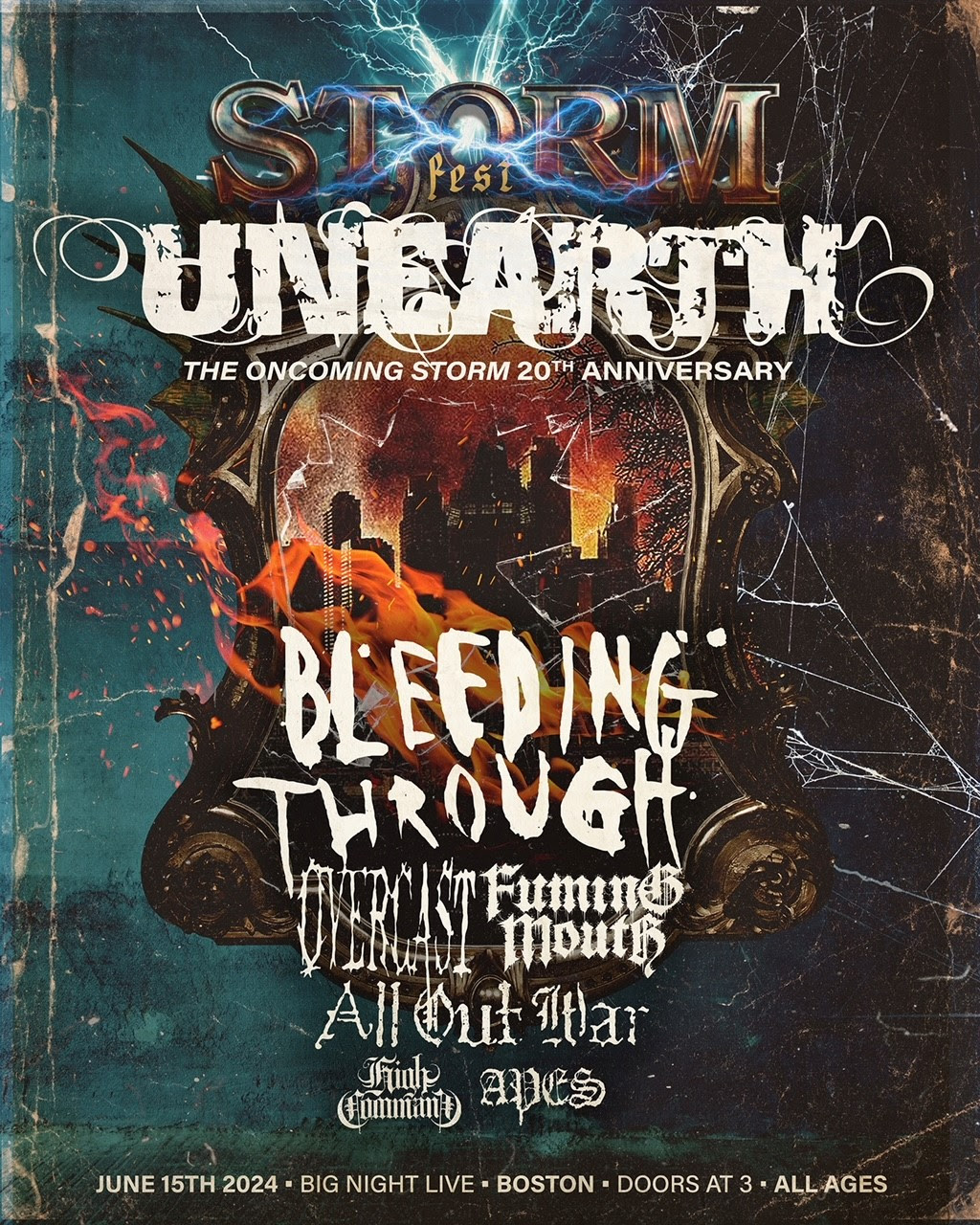 On Saturday, June 15th, Unearth will celebrate 20 years of their Metal Blade Records album, The Oncoming Storm, with Storm Fest, at Big Night Live in Boston. The band will play the record in its entirety, along with a selection of other songs from their catalog. Joining them, at their first all ages gig in the city for 21 years, will be Bleeding Through, Overcast, Fuming Mouth, All Out War, High Command, and Apes. Read more from Unearth below.