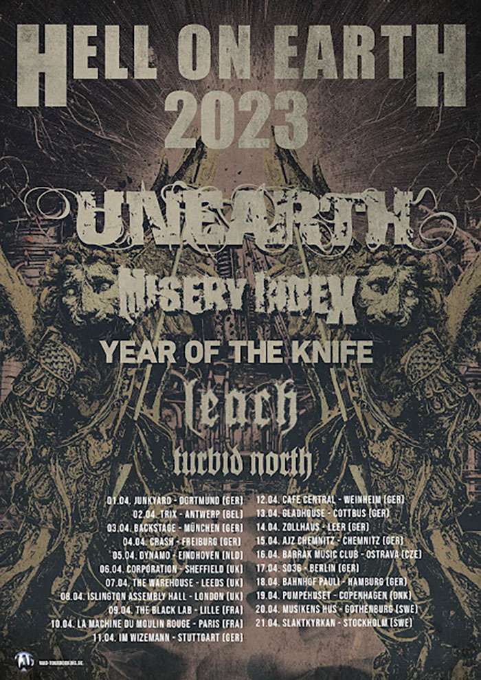 Unearth w/ Misery Index, Year Of The Knife, Leach, Turbid North tour dates: