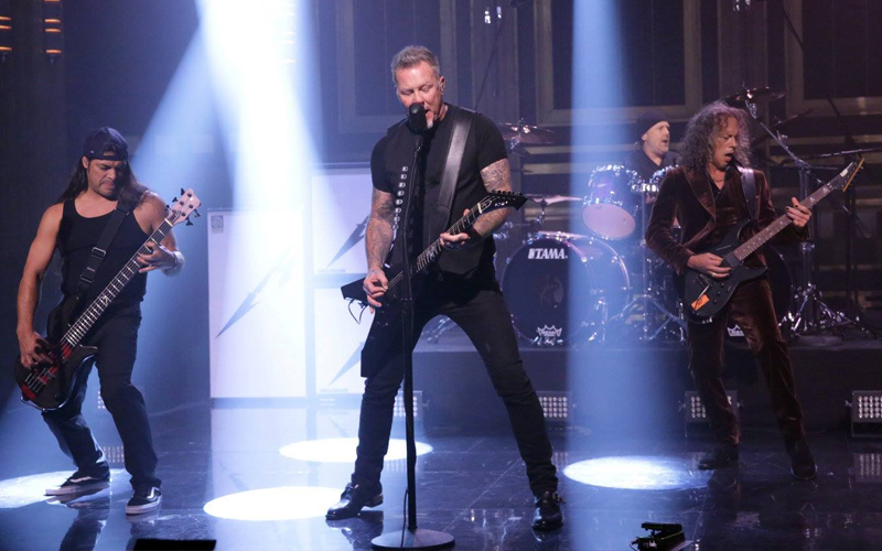 Metallica performed on last night’s episode of The Tonight Show Starring Jimmy Fallon, and I can tell you from firsthand experience, it was powerful. I was one of the lucky members of the studio audience for the momentous show, and as promised by Jimmy Fallon throughout the taping, Metallica was in the building, and their set was going to be loud. The staff even handed out earplugs before they hit the stage, because as you’ll see in the video, the heavy metal icons shook the walls with their new ‘Moth Into Flame’ single! Check out the LOUD and AWESOME performance below!
