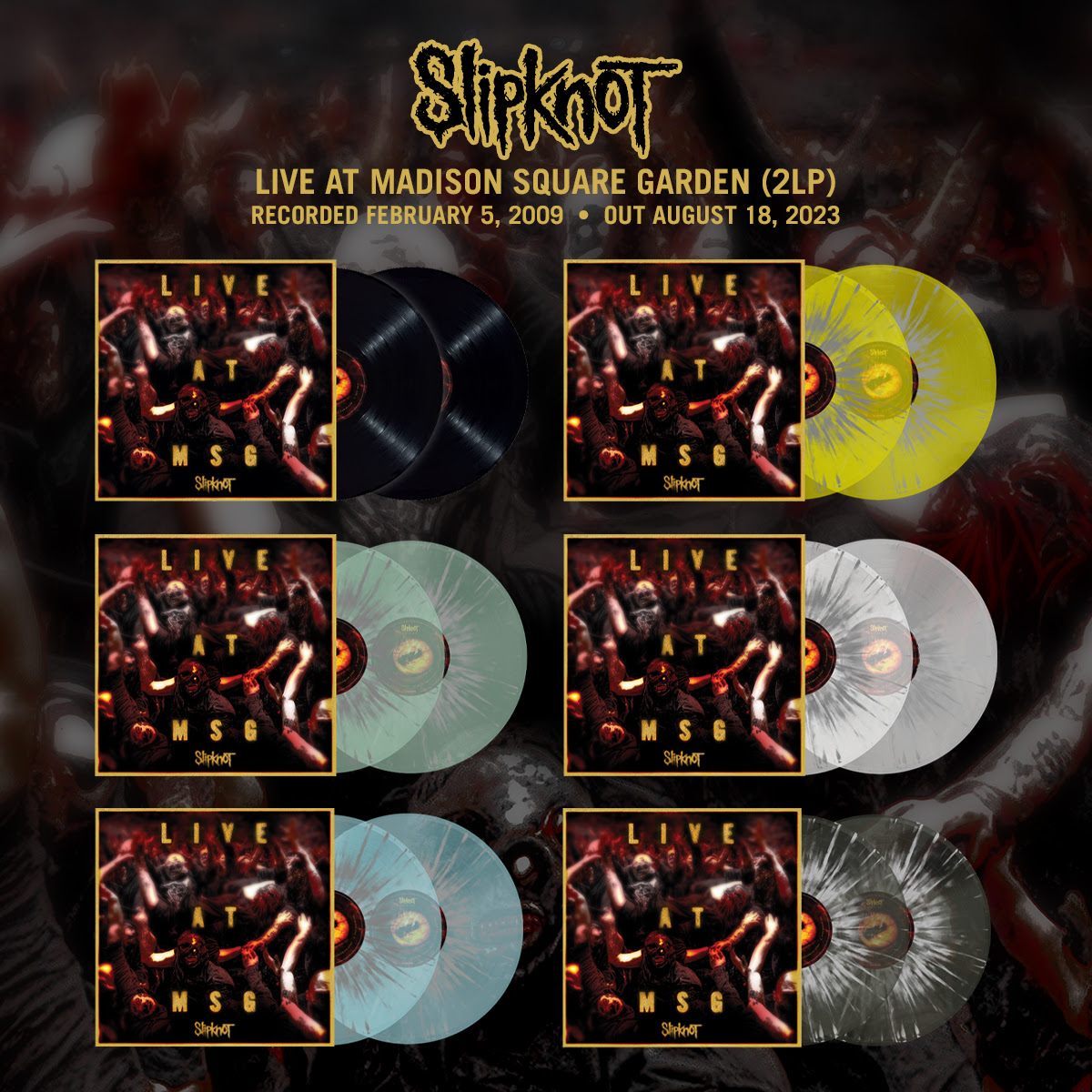 Slipknot will celebrate the 15th anniversary of their All Hope Is Gone album from 2008, released on Roadrunner Records. They will drop a live album – Live at MSG, honoring the band’s first concert at “The World’s Most Famous Arena” – Madison Square Garden in New York City. The album featured new artwork by Clown, and vinyl variants have been made available now at the links below-featuring band members’ selected custom-colored limited editions themselves. The band has now shared a new HD version of their classic “Dead Memories” music video on YouTube! Pre-order the album now and watch the clip below!