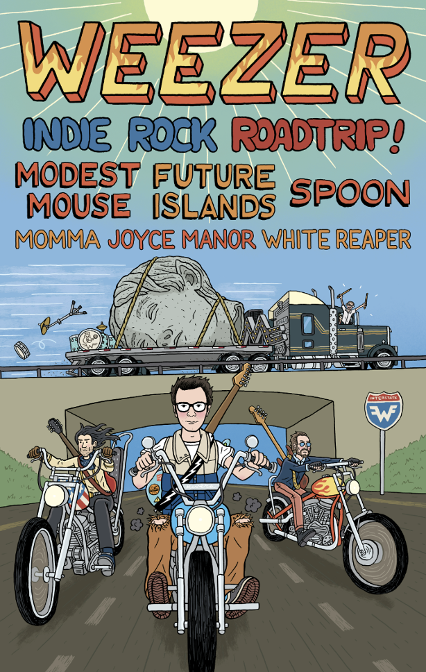Weezer has announced a huge summer tour sure to make Alternative and indie Rock fans happy! Weezer’s Indie Rock Roadtrip will feature support from Modest Mouse, Future Islands, Spoon, Momma, Joyce Manor, and White Reaper on a 30-city run of dates. Tickets are on sale Friday, March 3rd at 10am local time. Full dates and ticket on-sale links for Weezer’s Indie Rock Roadtrip are below.