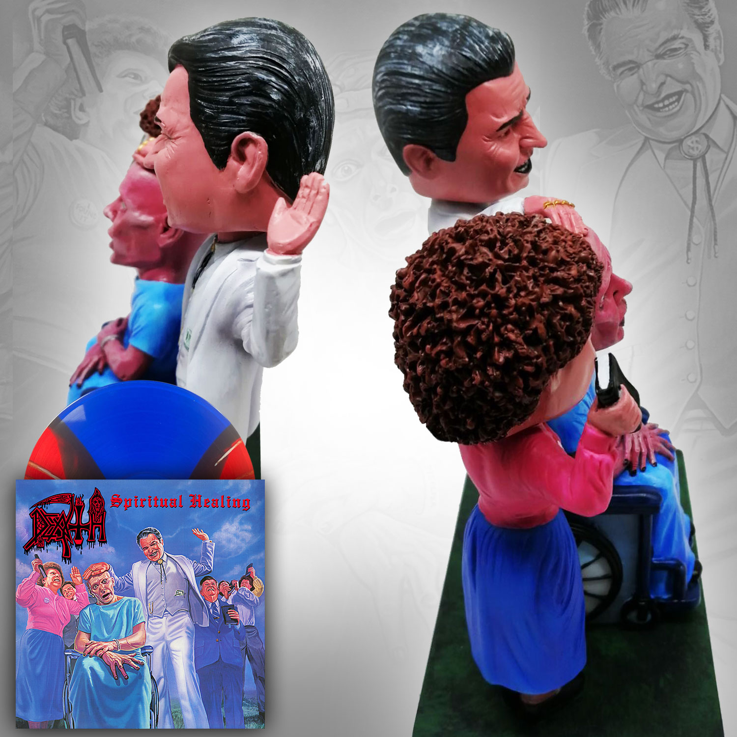 Relapse Records has spent most of the last year continuing to pay tribute to the legacy of Death, their classic albums, and many new live recordings. Now you can get their iconic Spiritual Healing album on limited vinyl with a set of bobbleheads of the preacher, zealot, and the parishioner from the much loved and meme’d cover artwork. These will likely sell out as they are limited to 500. You can order them at the link below.