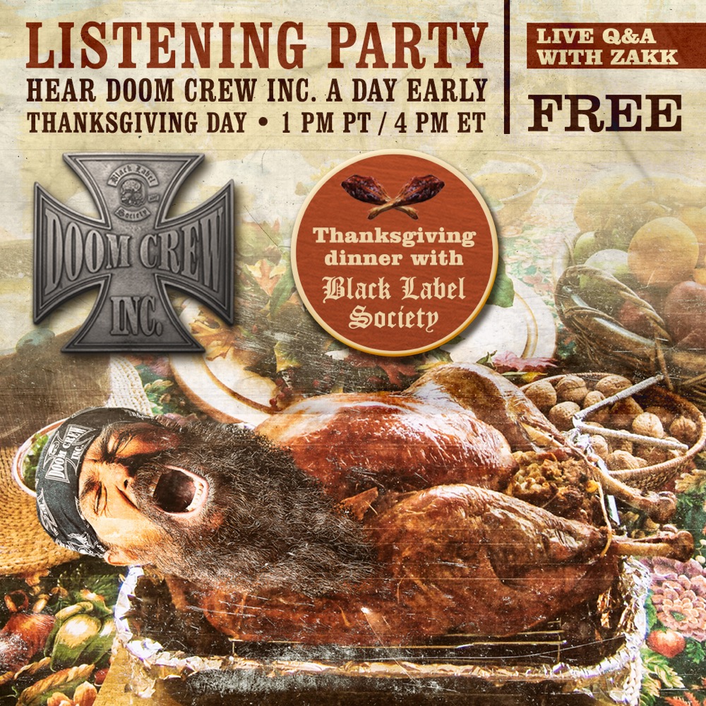 Zakk Wylde’s BLack Label Society will release their highly anticipated new album, Doom Crew Inc. on Friday, November 26th, 2021 via MNRK Music Group. The day before the release Zakk and the band will host a a listening party happening on Thanksgiving Day! Spend Thanksgiving with the band and crew for a listening livestream event followed by a fan q&a. The album is a tribute to the band’s “first to bleed, last to leave” road crew and the band will gather together with the current road crew in Salt Lake City while on tour to celebrate them and the release. The feast starts next Thursday at 4pm ET. Fans can pre-save and pre-add the album at the link below to RSVP!